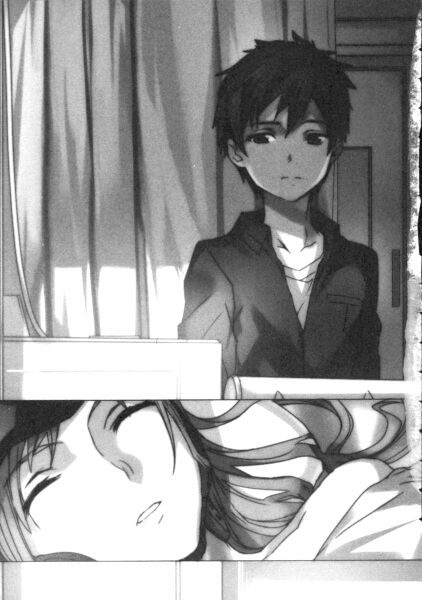 เธออายมากและเธอก็ก้มมองไปที่เท้าของเธอ คาซือโตะลงไปนั่งข้างๆเธอ และก้มโน้มตัวลงแก้เชือกรองเท้าของเขา เธอมองไปที่คาซือโตะและกัดมัฟฟินของเธออีกครั้ง ในช่วงเวลาไม่นานคาซือโตะก็เอ่ยขึ้น