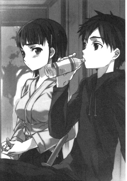 ซูกูฮะเธอแอบมีความสุขจริงๆอยู่ในใจ ที่พวกเขาสามารถพูดคุยกันได้อย่างเป็นธรรมชาติกับอีกคนเป็นเวลา 2 เดือนกว่า เธอเปลี่ยนจุดที่ยืนของเธอไปทางขวาของคาซือโตะ เยิบห่างจากเขาเล็กน้อยแล้วนั่งลง เธอวางดาบไม้เคนโด้ของเธอไว้ข้างๆ เธอปวดฝาขวดน้ำแล้วยกขวดขึ้นใส่ปากของเธอ น้ำที่เย็นทำให้อุณหภูมิร่างกายที่ร้อนของเธอสดชื่นขึ้นมาก